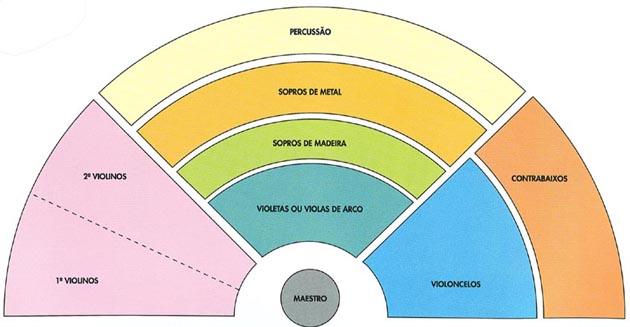 formação básica de uma orquestra sinfônica, haja vista que o posicionamento e